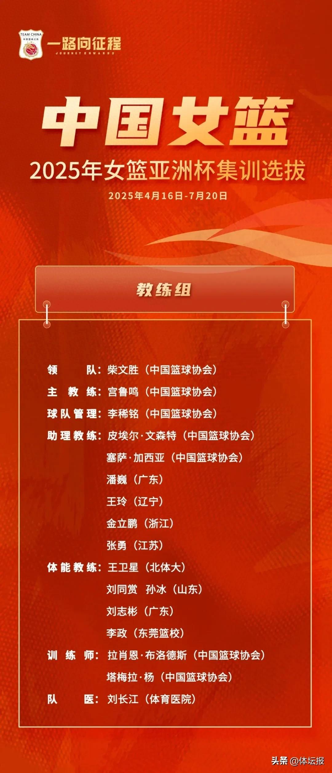 本次集訓的主要目標是7月13日至20日在深圳進行的女籃亞洲盃。宮魯鳴表示,“希望營造一個團結、緊張、嚴肅、活潑的氛圍,讓大家在這個環境裏面公平競爭,積極向上,建設一支聽從指揮、紀律嚴明、作風優良、能打勝仗的隊伍。”
