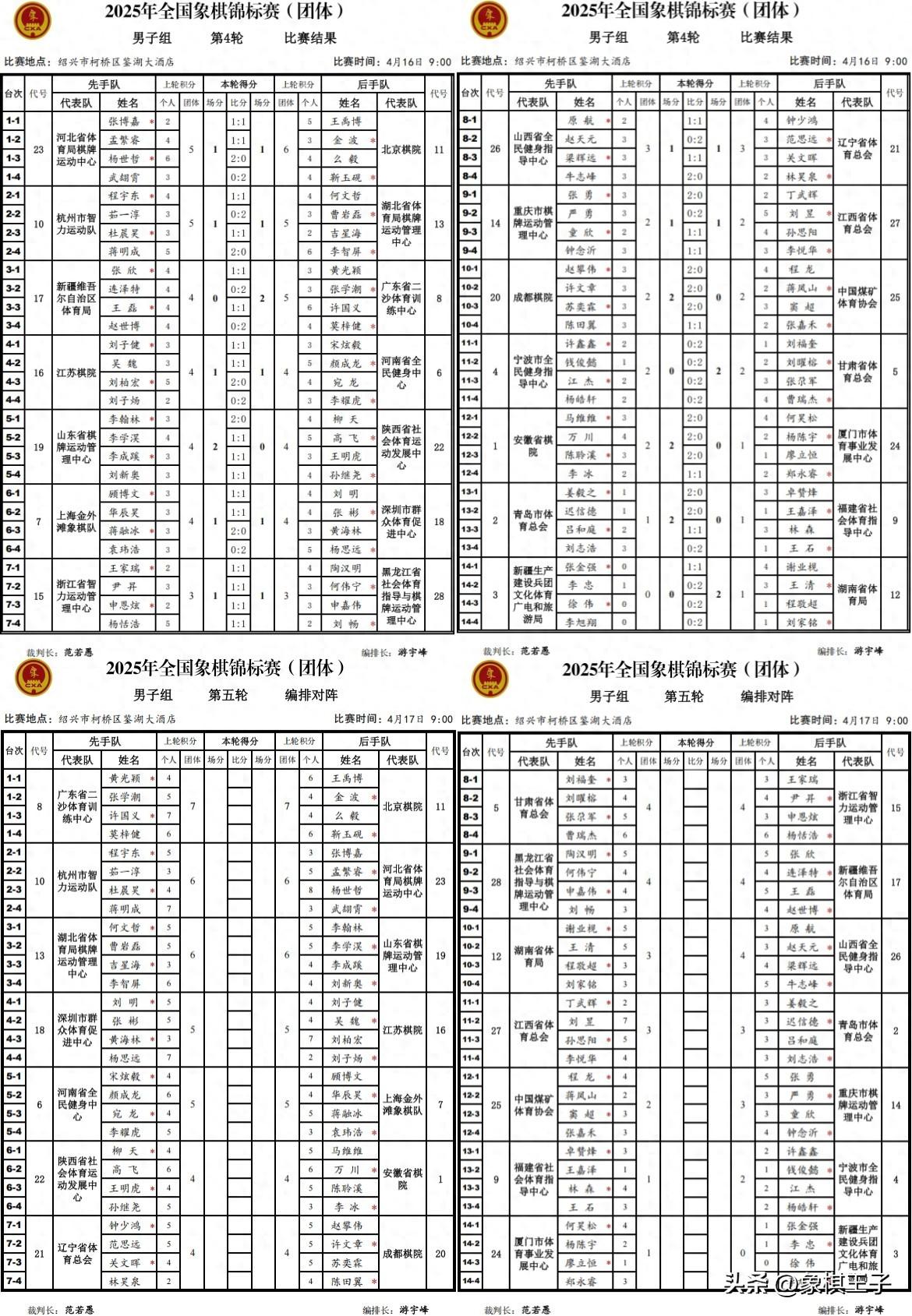 男子組當中,四戰後廣東、北京7分,杭州、河北、湖北、山東6分,六支戰隊處於第一集團。