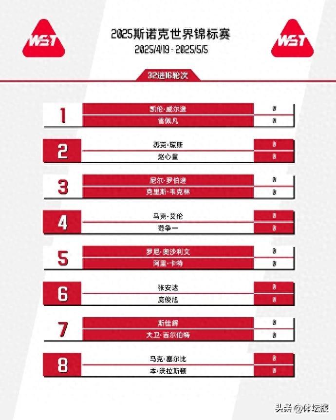 正賽首輪,除了龐俊旭將與張安達上演“中國德比”,其餘8位中國選手都將面臨外戰。