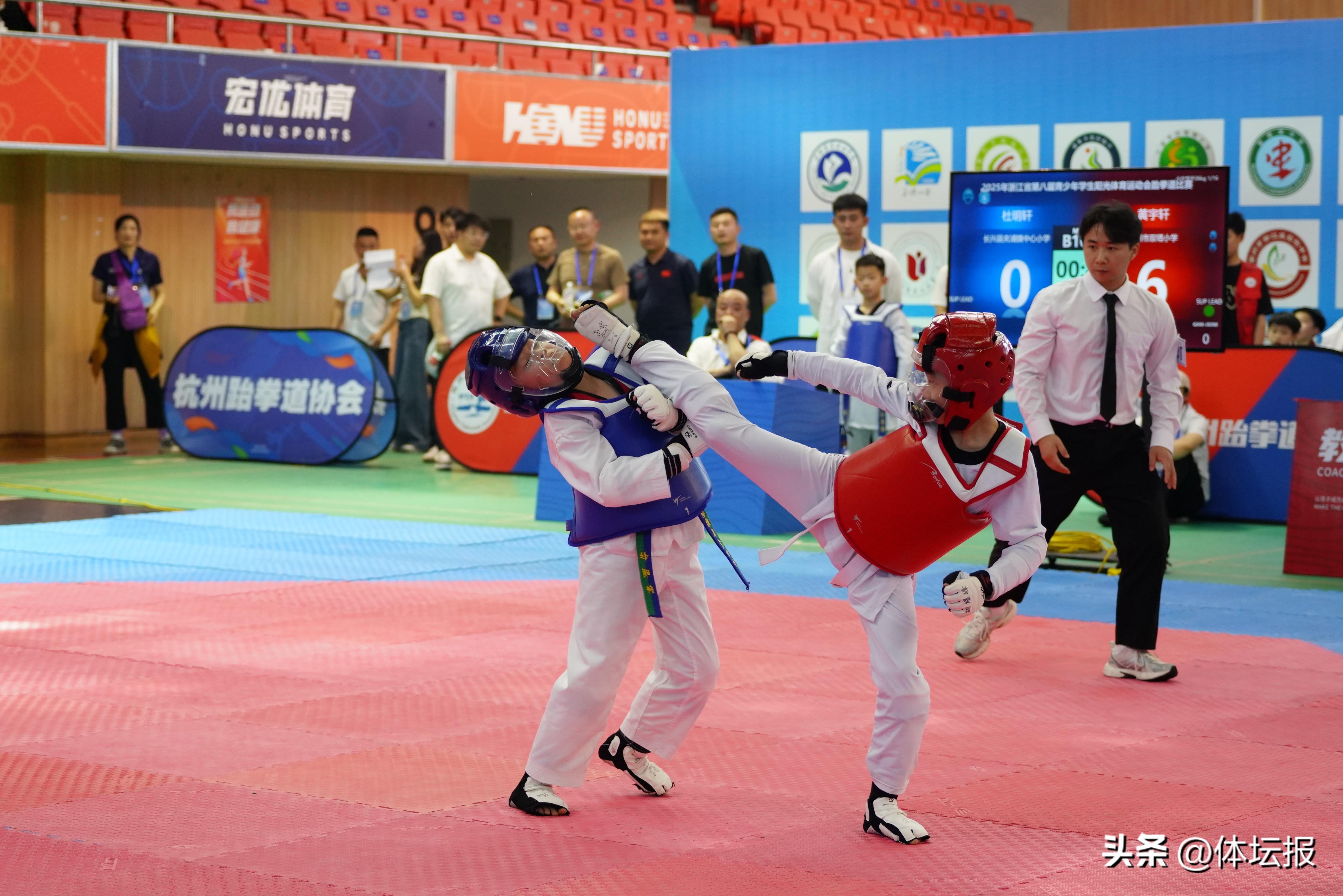 4月18日—20日,2025年浙江省第八屆青少年學生陽光體育運動會跆拳道比賽在杭州市拱墅區文化體育中心體育館舉行,共有來自全省五百多名中小學生參加。