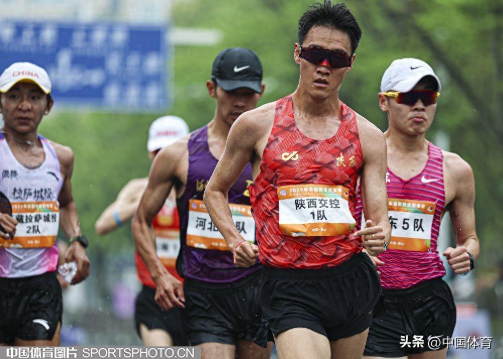 中國體育訊 4月20日,2025年全國競走冠軍賽繼續在黃山市屯溪區進行。在馬拉松競走混合接力決賽中,陝西交控一隊以3小時00分33秒的成績奪得冠軍,黑龍江一隊以3小時02分35秒獲得亞軍,河北二隊以3小時02分47秒獲得季軍。圖爲比賽精彩畫面。(中國體育圖片 張昕 攝)