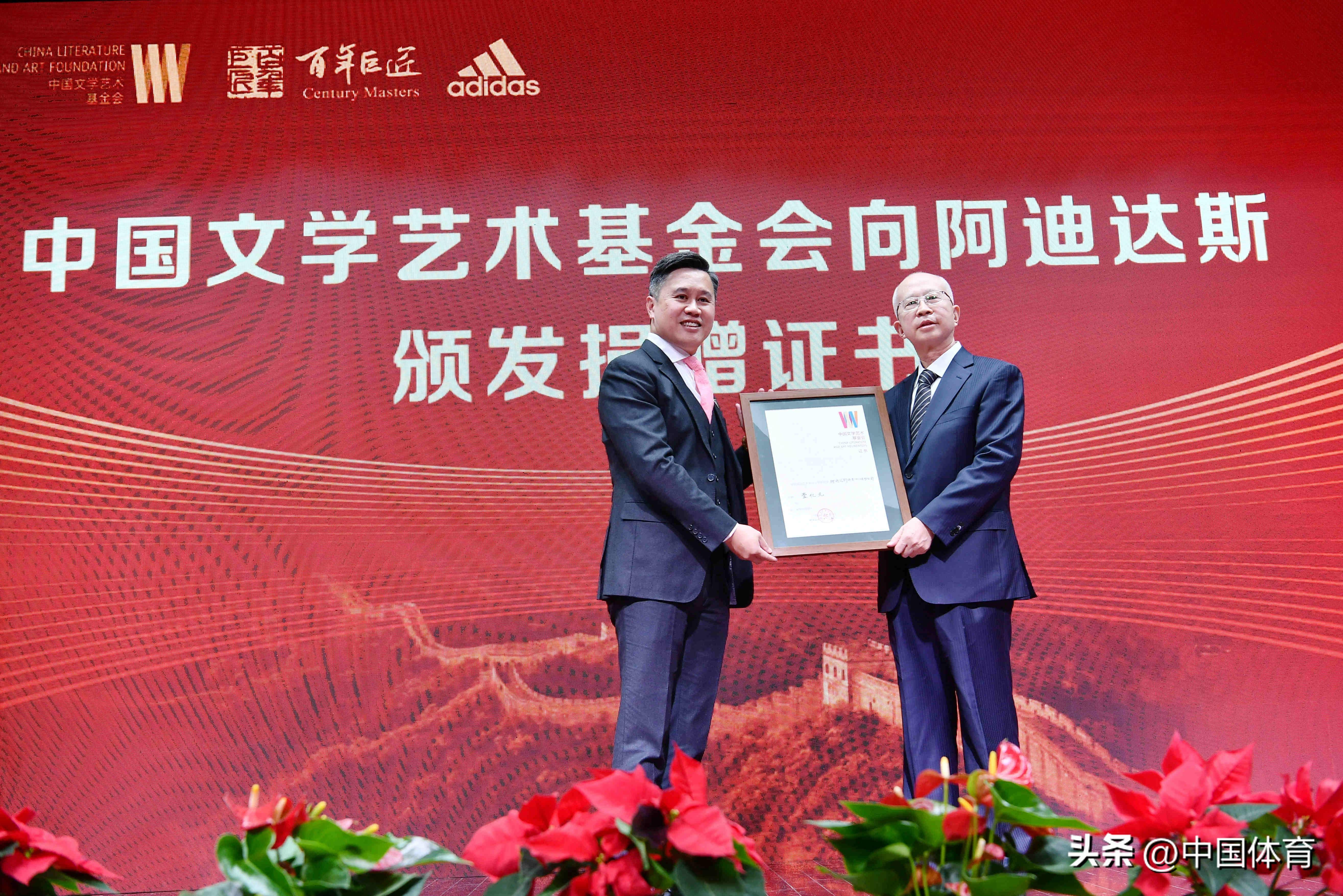 中國文學藝術基金會向阿迪達斯頒發捐贈證書