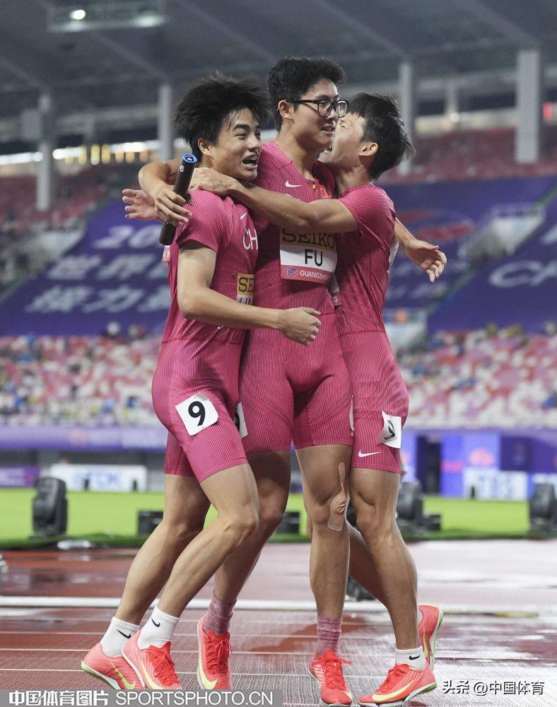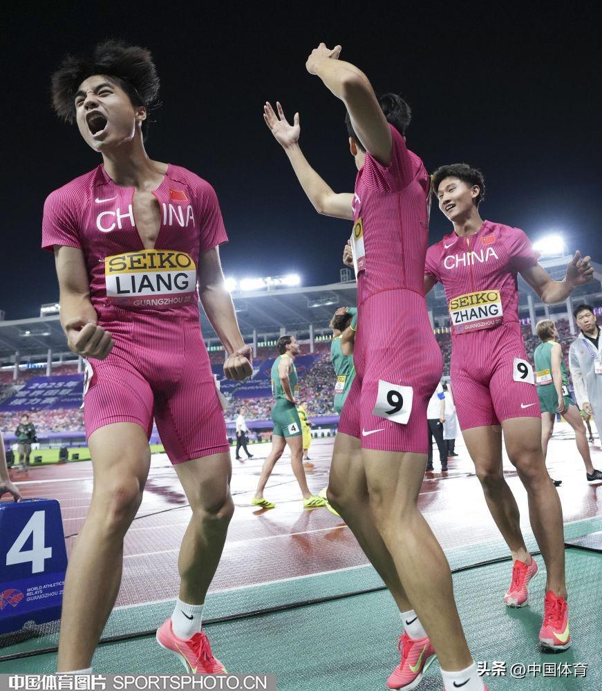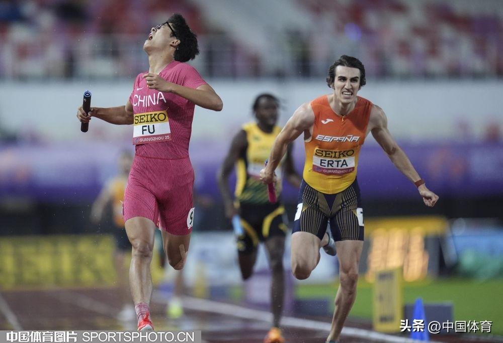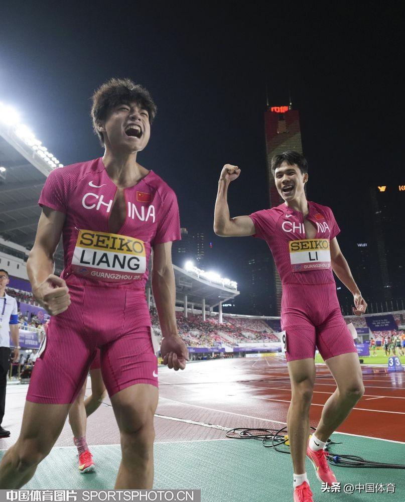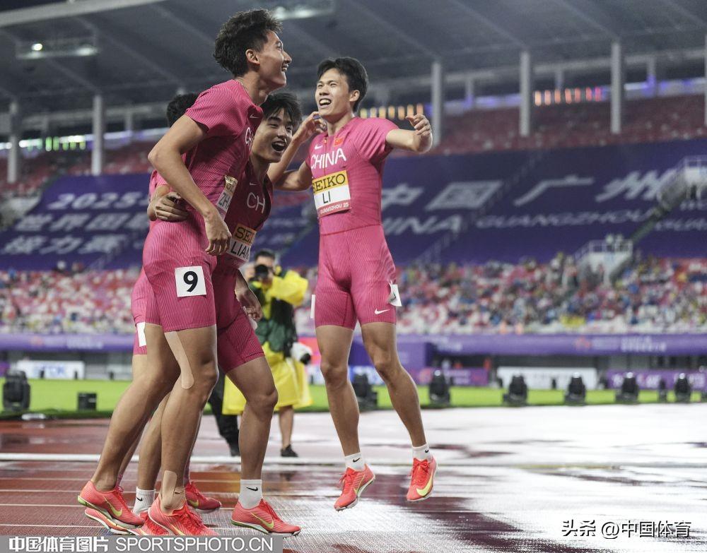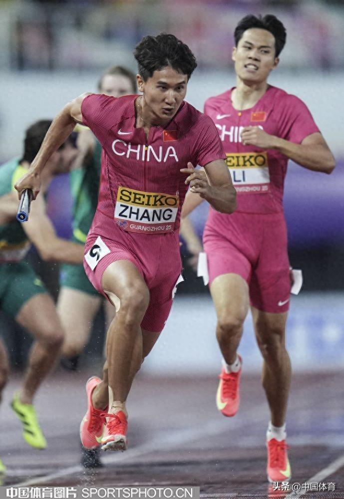 中國體育訊 5月10日晚,2025年世界田聯接力賽在廣州天河體育中心拉開帷幕。男子4×400米預賽中,由梁寶棠、李懿卿、張起寧和付浩然組成的中國隊,以3分01秒87打破全國紀錄,位列小組第二晉級決賽,獲得東京世錦賽參賽資格。(中國體育圖片 魏徵 攝)張起寧(左)在比賽中付浩然在比賽中付浩然慶祝晉級中國隊慶祝晉級中國隊慶祝晉級中國隊慶祝晉級中國隊慶祝晉級
