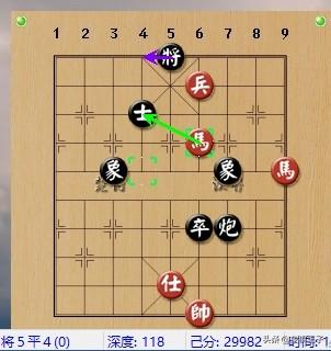 然王禹博士5退4,連出大漏,紅方飛速的撲車進駐黑棋卒林,一個強行兌車,這下黑方懵了。