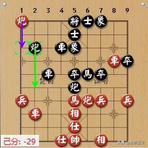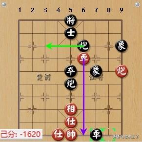紅棋炮一進一退,失了兩先,黑棋由是佔優之下,其後炮打中兵,又退炮隔斷紅棋河道,已然形成大優。