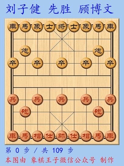 隨後與上海07年少將顧博文的較量,兩人慢棋戰和,超快棋中,劉子健執先手飛相對左中炮陣中,連出強手,佈陣即取得優勢。