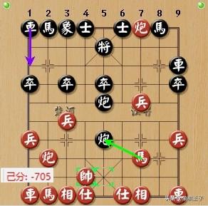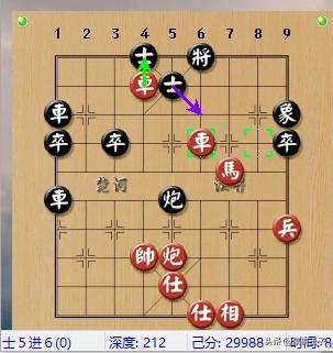 到此,才六個回合,雙方的老將,已經都到了二樓,當下,黑棋提左車橫起,要攻殺紅棋側翼。