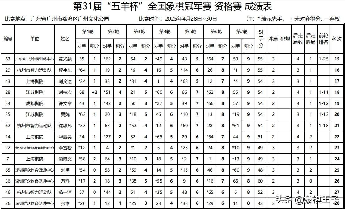 五羊杯資格賽的大戰,在廣州文化公園強勢結束,二十四位通入複賽的棋手,全部產生,閃耀出爐,賽會第一階段到此宣告收官。