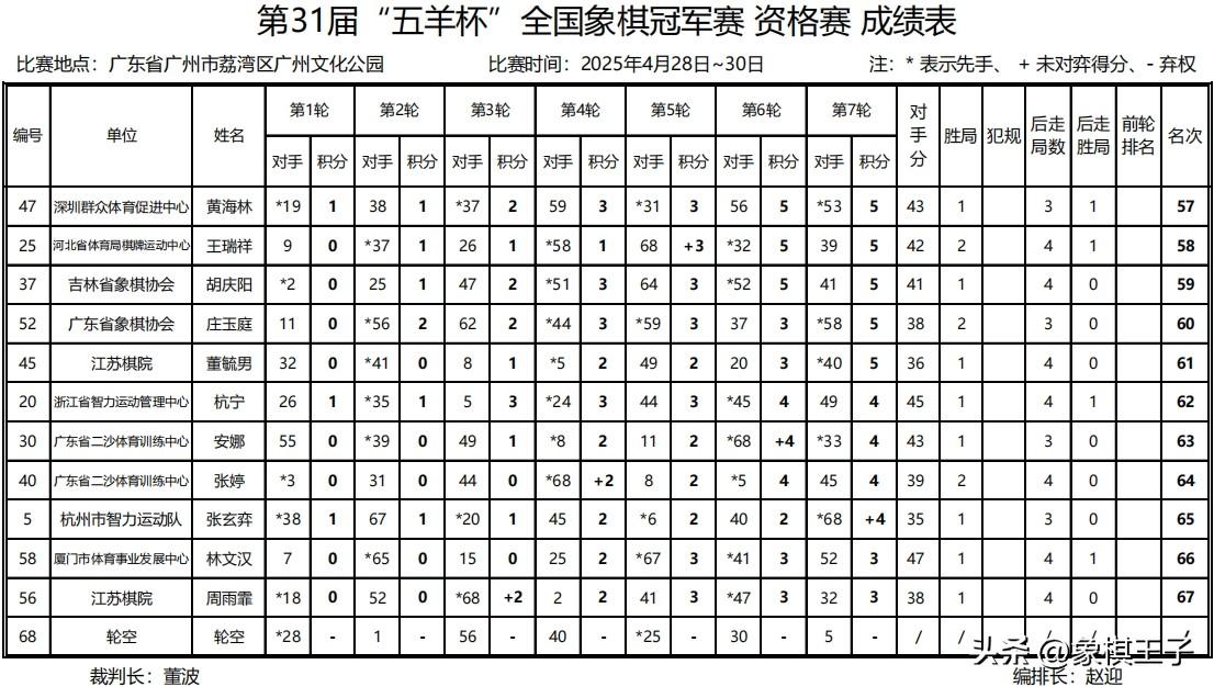 比賽資格賽階段,大師組六十七將採取7輪積分制,前二十四入圍複賽,進行新一輪的衝擊。