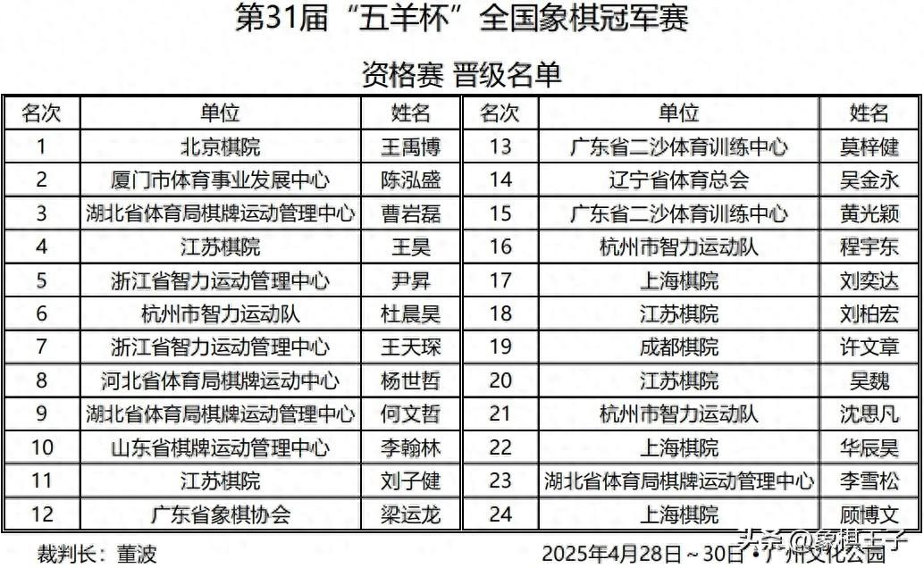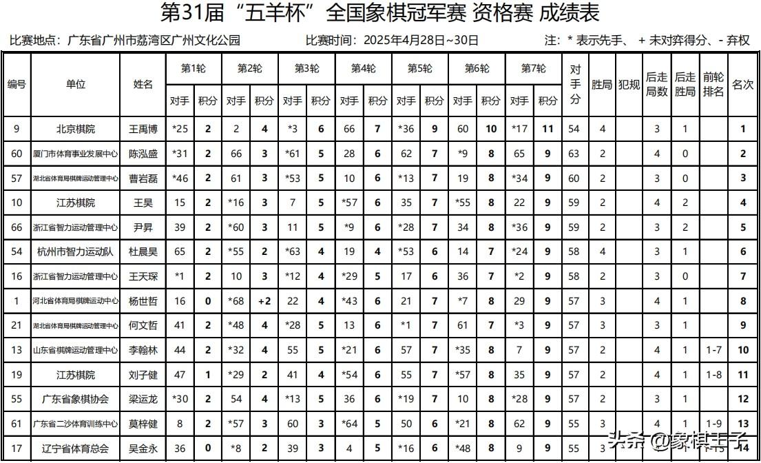 熱烈祝賀第三十一屆五羊杯資格賽圓滿成功,賀喜二十四位突圍複賽棋手,恭祝五羊杯複賽、決賽再創高峯,成就輝煌,續寫傳奇!