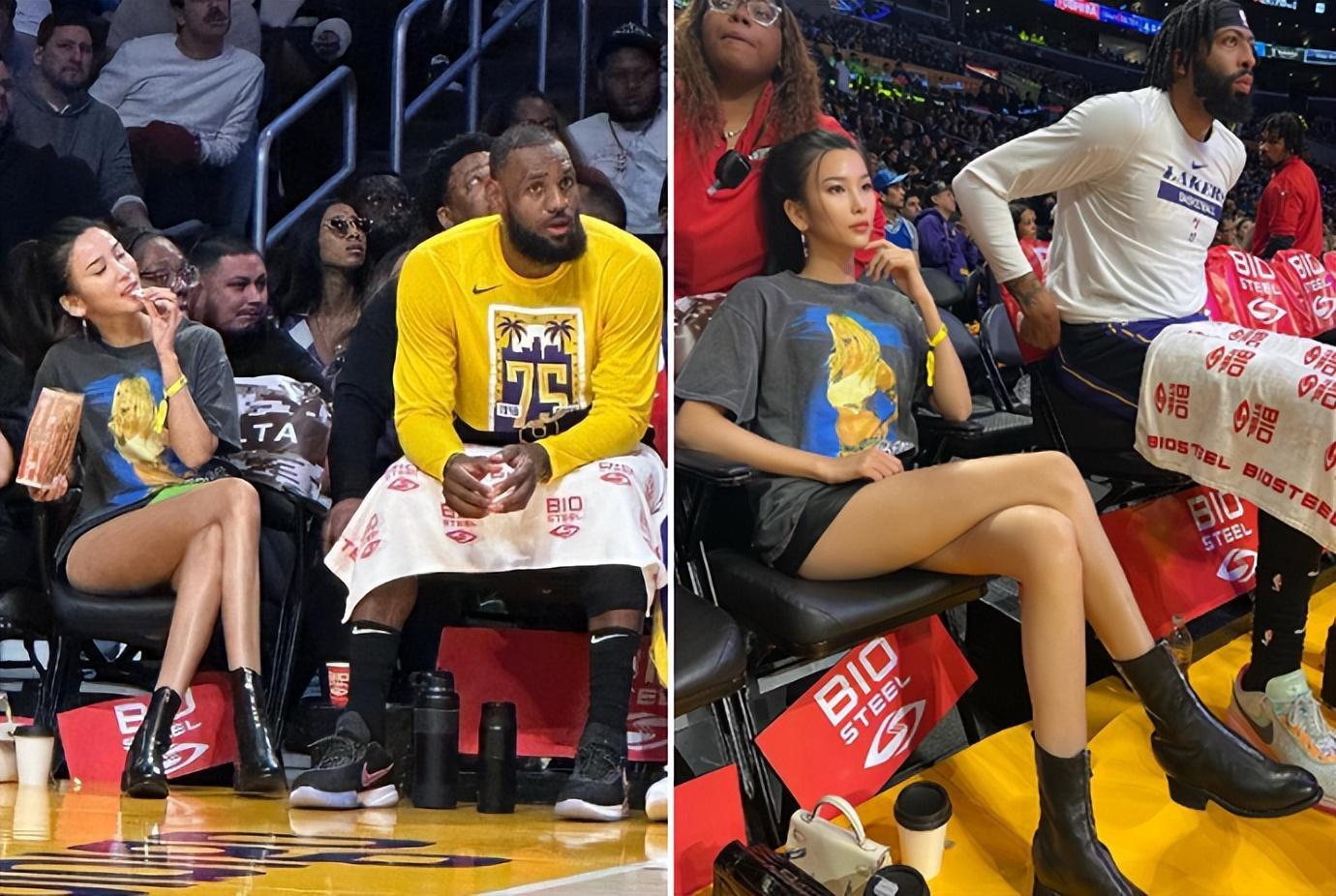 值得一提的是,在詹姆斯坐在場邊的時候,一位長着東方面孔的美女意外出鏡走紅,她就是網紅金兜兜,這次她又來到現場看球,並且買了最前排的VVVIP座位,可以看出,金兜兜當時的座位緊挨着詹姆斯和濃眉哥,讓無數球迷羨慕不已。