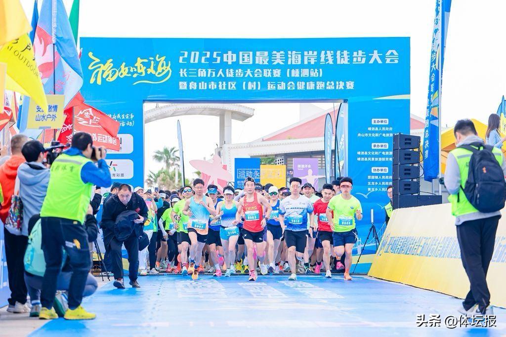當天上午8時整,隨着發令汽笛聲響,舟山市社區(村)運動會總決賽健康跑比賽的選手率先出發,參加中國最美海岸線徒步大會長三角萬人徒步大會聯賽(嵊泗站)的選手緊隨其後。