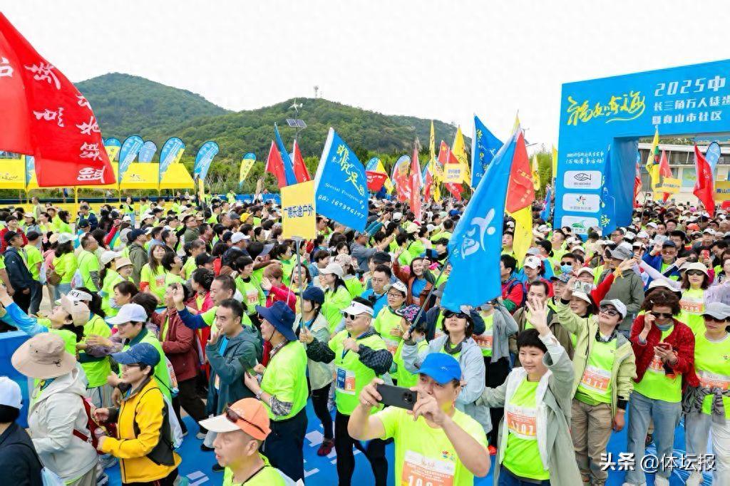 5月11日,2025中國最美海岸線徒步大會長三角萬人徒步大會聯賽(嵊泗站)暨舟山市社區(村)運動會總決賽健康跑比賽在嵊泗縣基湖沙灘景區廣場舉行。來自長三角地區以及舟山市內的各參賽代表隊共3000餘名運動員參與了本次活動。