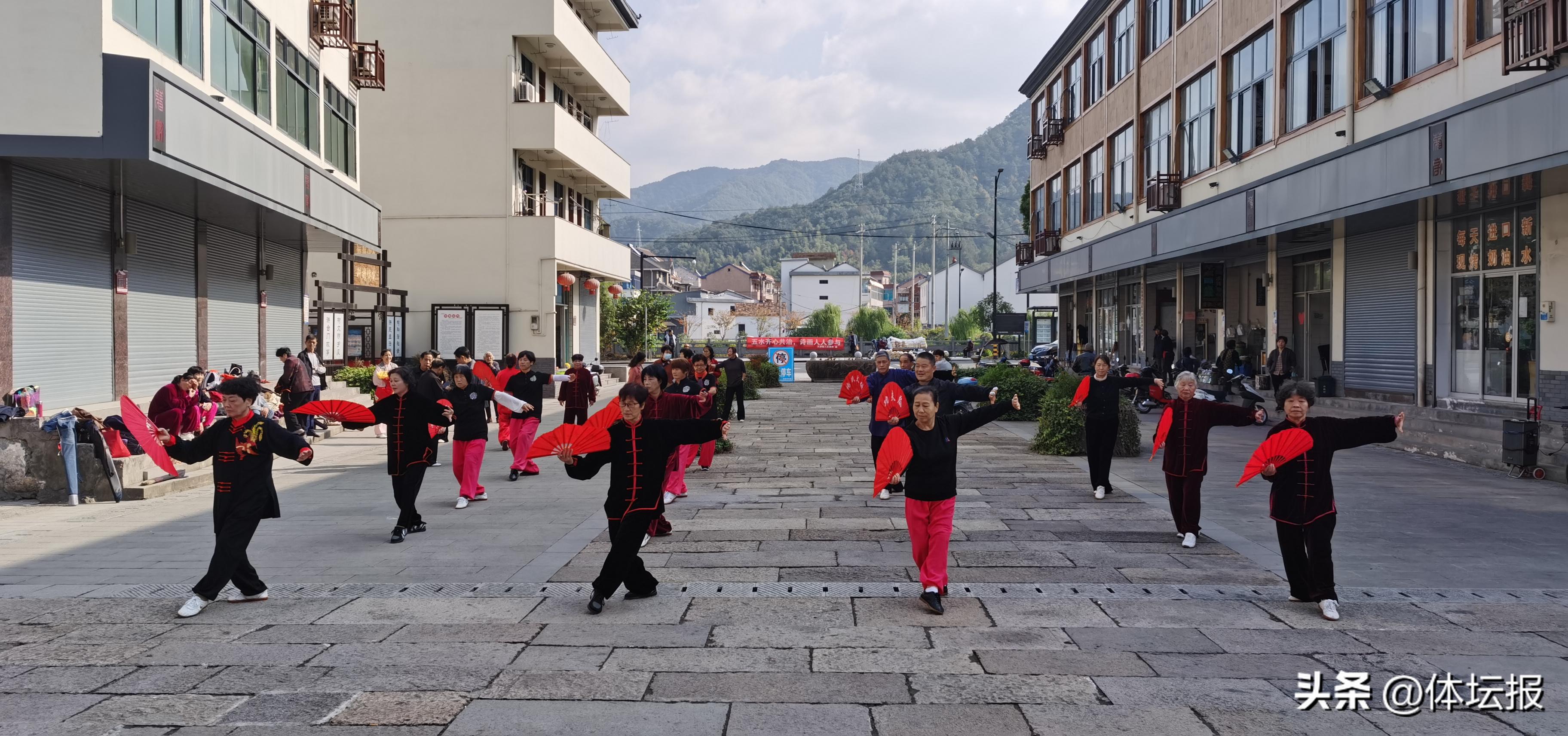 在該村文化禮堂前的廣場上,當日暖陽和煦,32名拳友擺開場面,有條不紊,一一展演了太極拳“八法五步” 、24式太極拳、刀、劍、扇,齊整整舞起來,剛柔健美的丰姿,零距離的太極拳魅力,使圍之觀之的村民觀衆們大受感染,紛紛叫好。許多村民們想投身運動、參與太極拳健身鍛鍊的自信心大大增強,吸引越來越多村民的觀看,村民在紛紛點贊之餘,不少人也開始跟隨拳友現場學動作,比比劃劃,有模有樣,蹲着馬步學起來。更多的則忙不迭與老師加微信、留下電話、合影,都想要跟着老師學起來。
