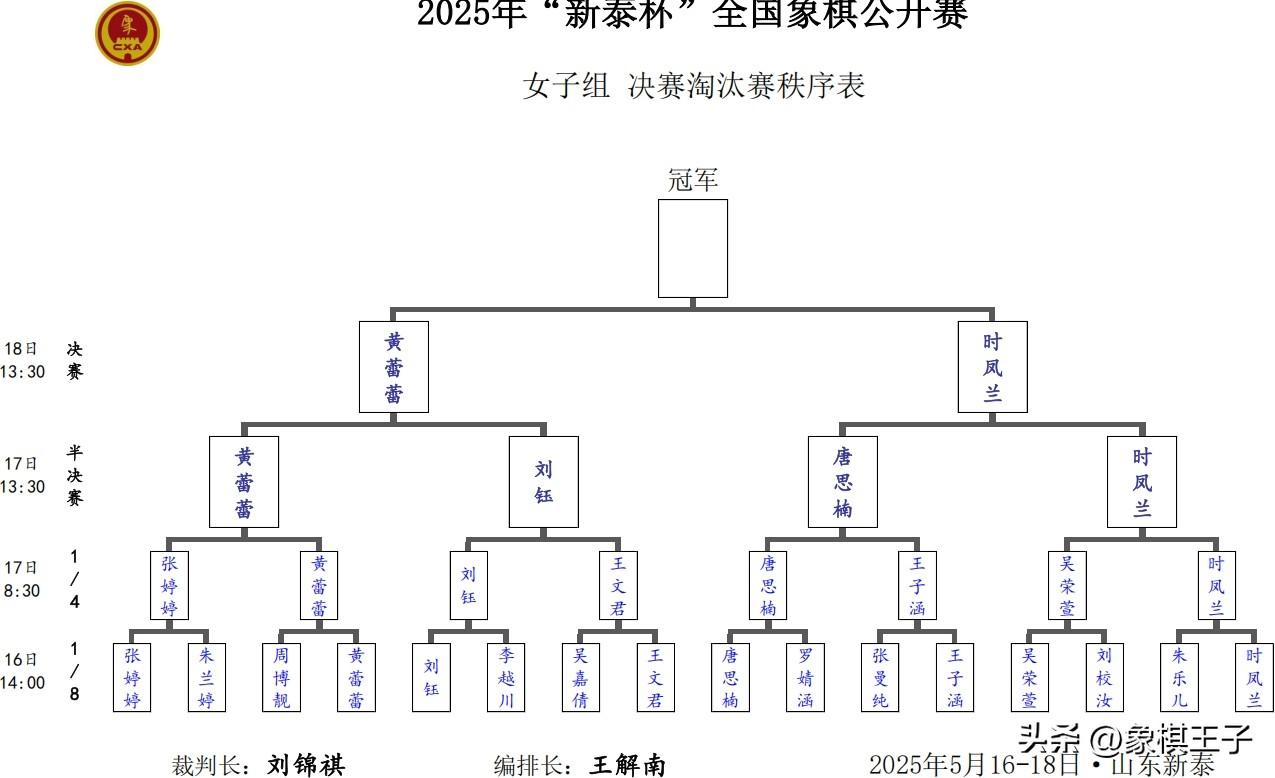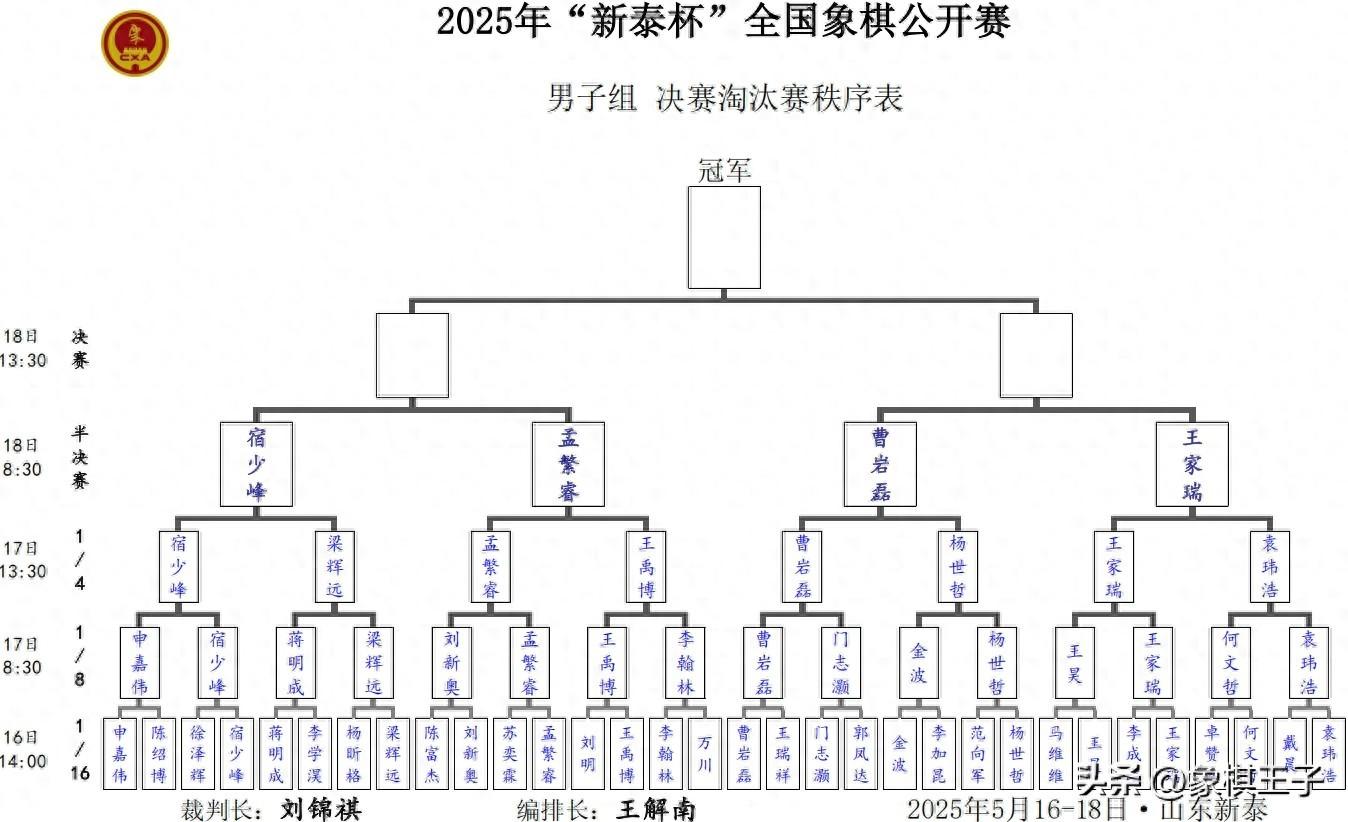 大賽18日上午八點半、下午一點半,進行賽會四強半決賽與冠軍總決賽的連場大戰,巔峯對決,王冠金座,即將產生,誰能一舉登頂,笑傲賽場,強取雄霸,象棋王子也將繼續進行全程的直播和報道,與棋友一起共見冠軍榮耀,敬請關注、支持、守護,謝謝!