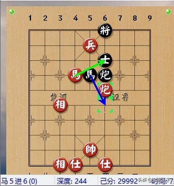 黑棋未料得這招,前線車馬較孤,紅攻擊中,雙馬凌動,迫使黑方只得反以舍車喫馬,暫解危機。