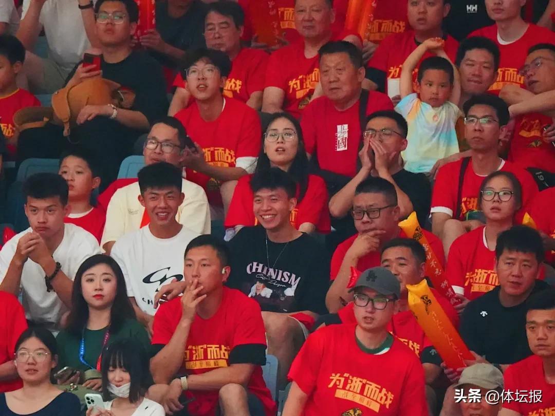 浙江足球俱樂部的王鈺棟也來現場觀賽(中間黑衣)