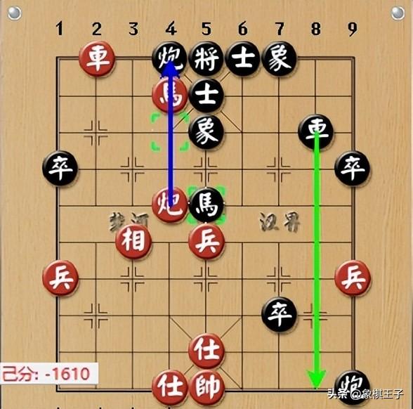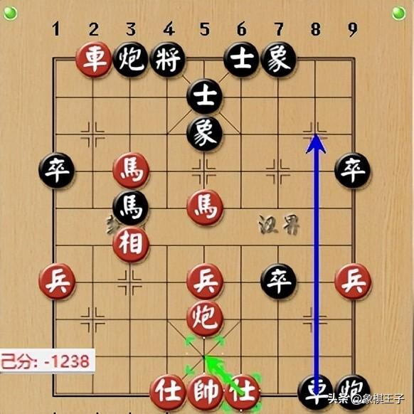 黑棋這下提炮打紅底相叫將,甩炮邊路,在紅棋的右路,形成了空門的攻勢,看上去勝利在望。