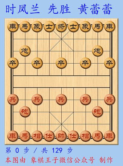 加賽超快棋第二局,時鳳蘭執紅棋與黃蕾蕾進行了猛烈的對攻,經過129手鏖鬥,時鳳蘭中盤奪子,踢馬踩士叫將,車馬炮對車馬絕殺力取勝利,贏下賽會的女子總冠軍,黃蕾蕾亞軍。