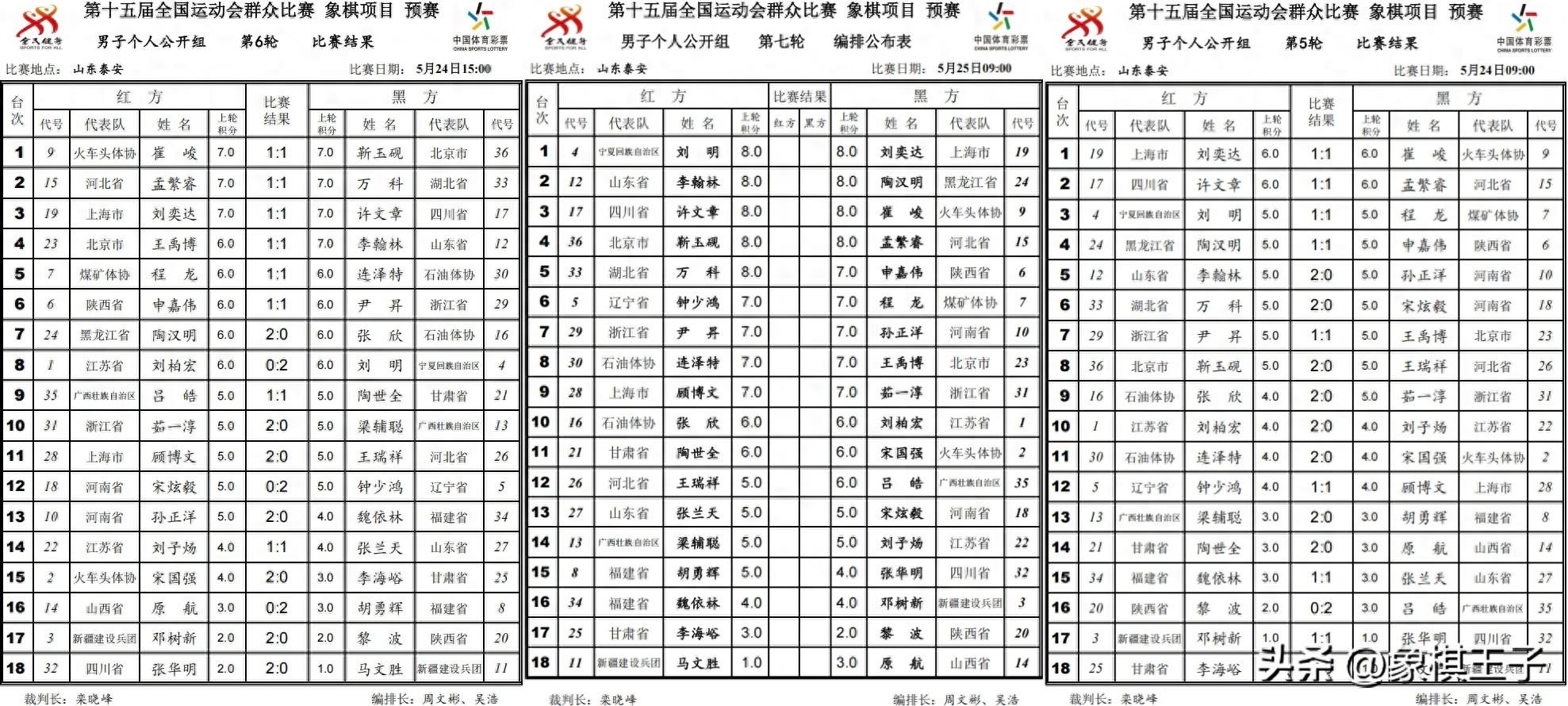公開男子個人組中,六輪後,按大分和小分,孟繁睿、崔峻、許文章、劉奕達、劉明、萬科、靳玉硯、李翰林、陶漢明8分,連澤特、王禹博、申嘉偉、程龍、茹一淳、顧博文、孫正洋、鍾少鴻、尹昇7分。