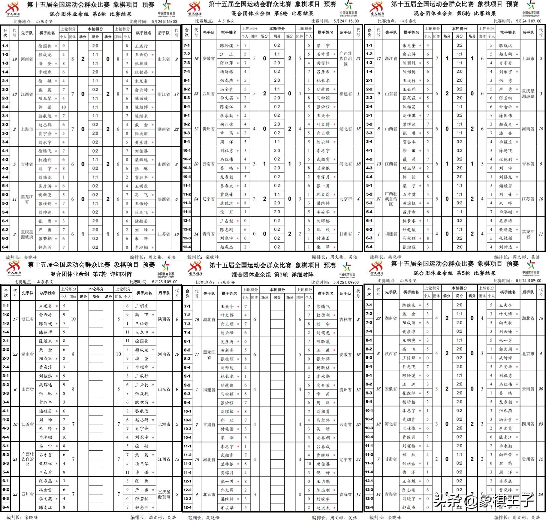 混合團體組,六戰之下,按大小分,河南隊、浙江10分,山西隊、陝西隊、山東隊、湖南隊8分,江蘇隊、重慶隊、上海隊、廣西隊、江西隊、四川隊7分。