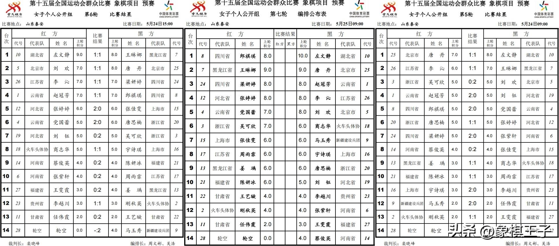 公開女子個人組,依大小分,六戰下來,左文靜10分,王琳娜、唐丹9分,李沁、劉歡、張婷婷、趙冠芳、郎祺琪、梁妍婷8分。