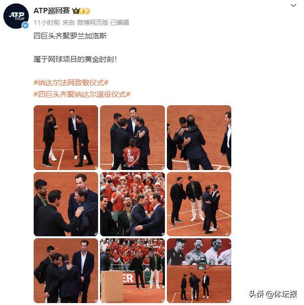 當天晚上,羅蘭加洛斯網球場還舉行了“納達爾退役儀式”,法網官方爲納達爾舉辦了盛大的致敬儀式 ,費德勒、納達爾、德約科維奇、穆雷網壇四巨頭聚首現場,法網將納達爾的腳印永久鐫刻在球場網柱一側的紅土中。