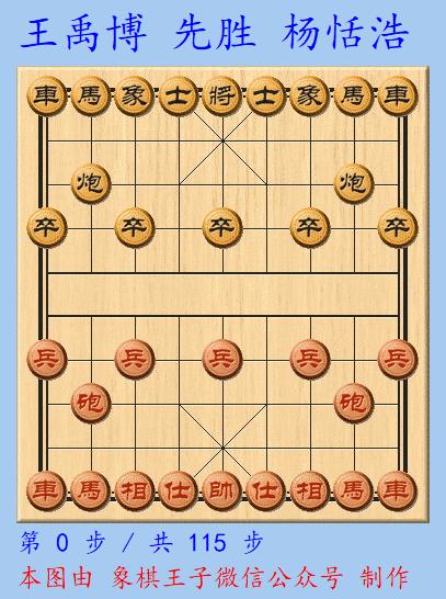 楊恬浩全力糾纏,二人兌換雙車後,形成馬炮雙兵單仕對馬炮卒雙士的殘局形勢,這個棋,紅方多兵多相,黑久戰後,無力支撐,王禹博步步爲營,115手製殺。