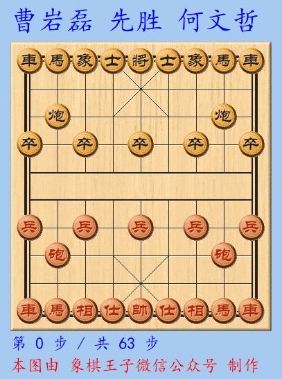 曹何之戰,曹巖磊執先手以中炮過河車對屏風馬左馬盤河橫車進攻何文哲,佈局紅方出左河頭馬,拆中炮,穩佔先機。