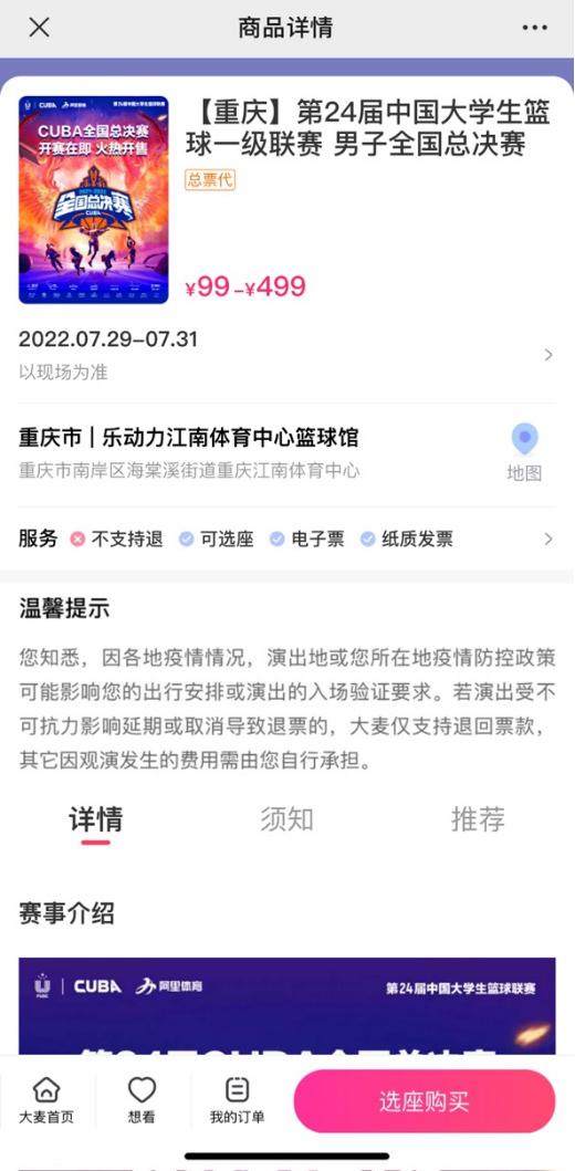 與此同時,CUBA全國總決賽已在大麥票務平臺正式開放售票,球迷朋友可在大麥平臺購買門票親赴前場觀賽。