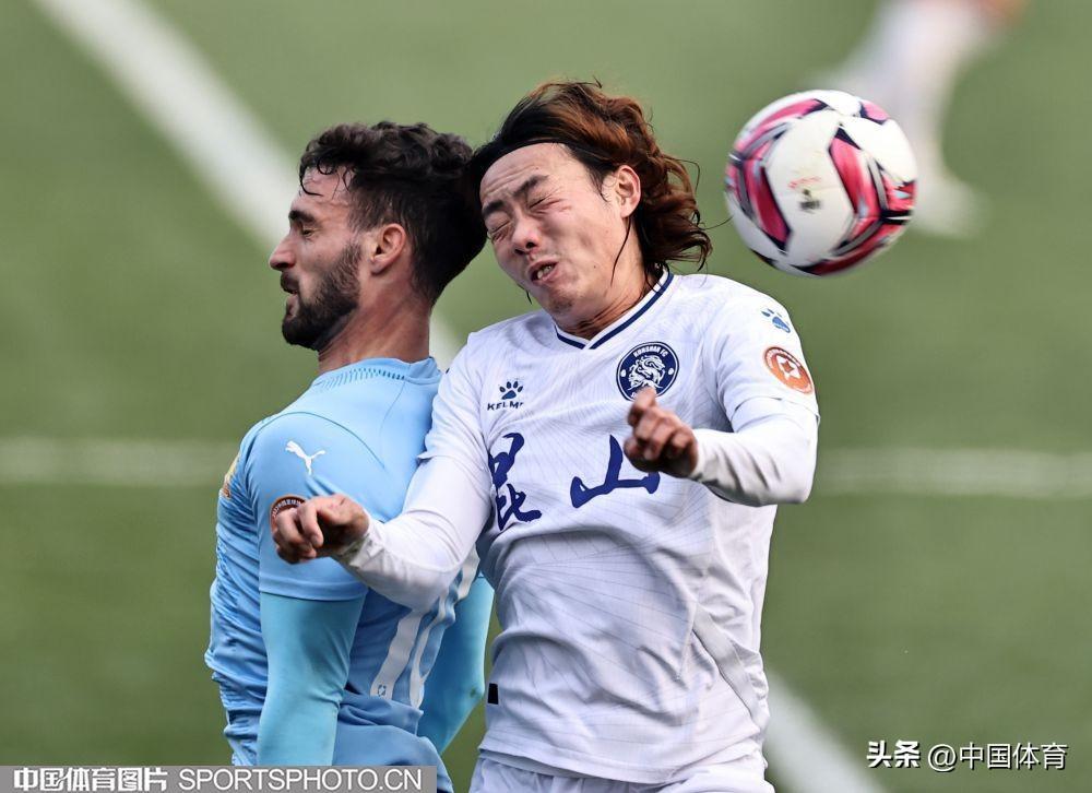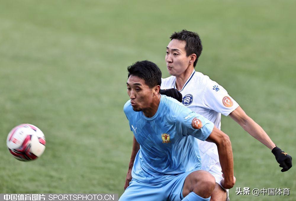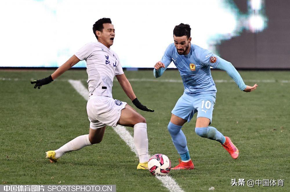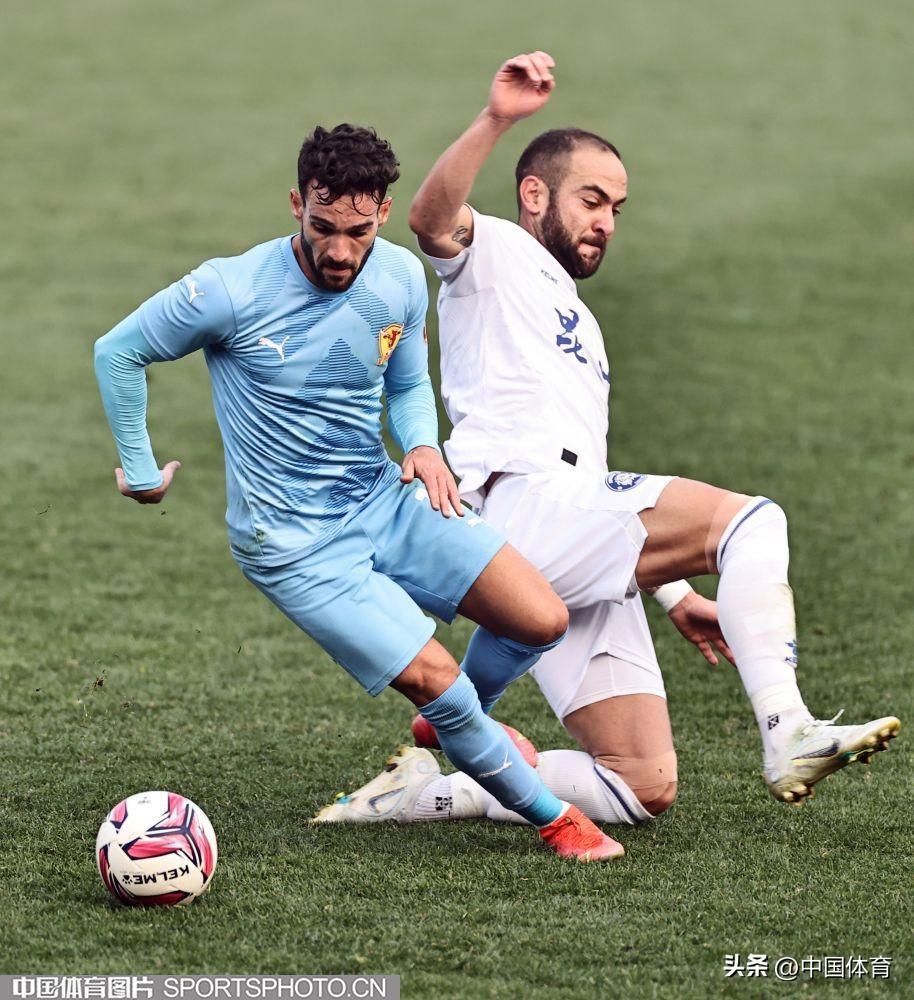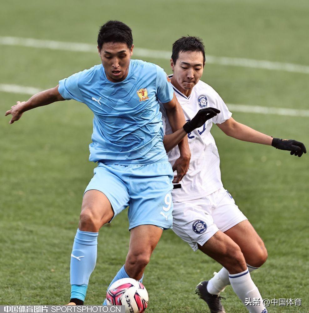 中國體育訊 11月7日,在2022年中國足球協會甲級聯賽第二十八輪(大連賽區)的一場比賽中,四川九牛隊(藍衣)以0比2負於崑山隊(白衣)。(中國體育圖片 王憲民 攝)