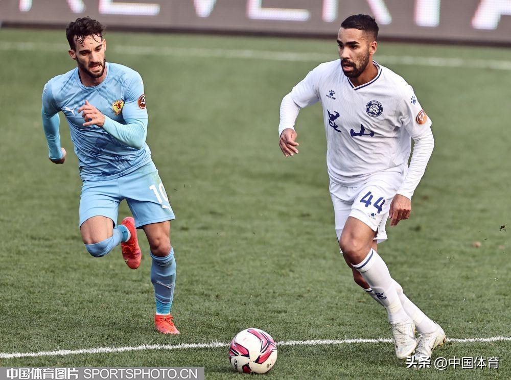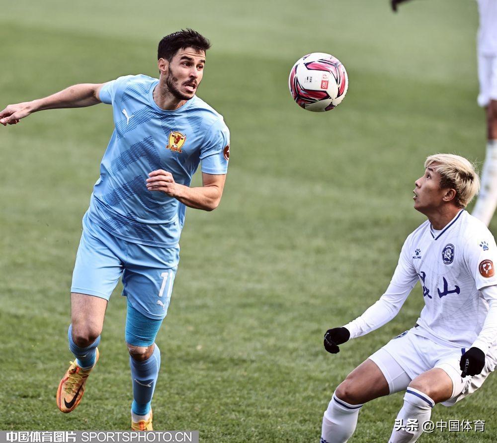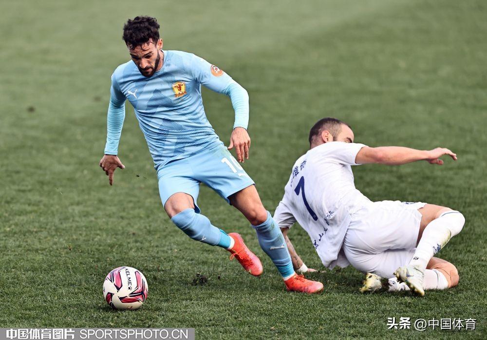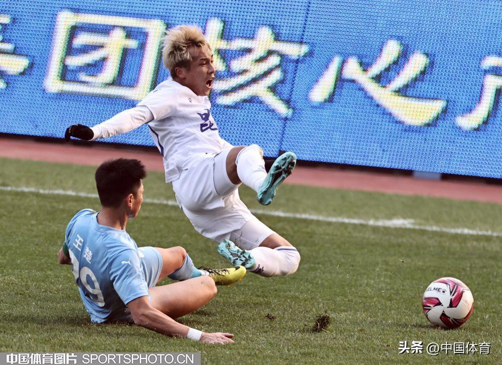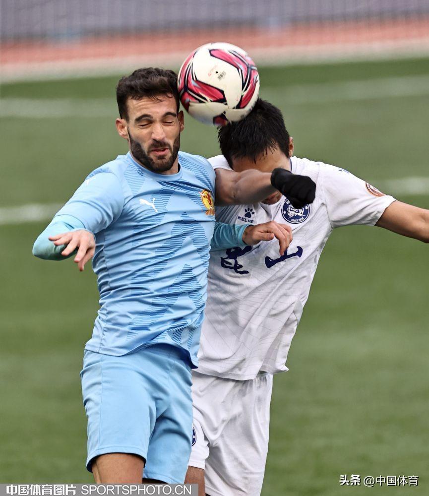 中國體育訊 11月7日,在2022年中國足球協會甲級聯賽第二十八輪(大連賽區)的一場比賽中,四川九牛隊(藍衣)以0比2負於崑山隊(白衣)。(中國體育圖片 王憲民 攝)