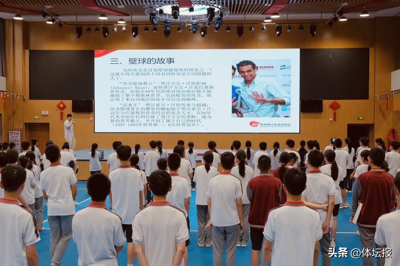 6月9日,海寧市亞洲舉重訓練中心壁球館內,以 “壁球點亮校園,運動強健體魄” 爲主旨的紀念 “發展體育運動,增強人民體質” 題詞 73 週年主題活動在此舉行,來自海寧市紫薇初級中學的二百多名學生,開啓了一段全新的運動體驗之旅。