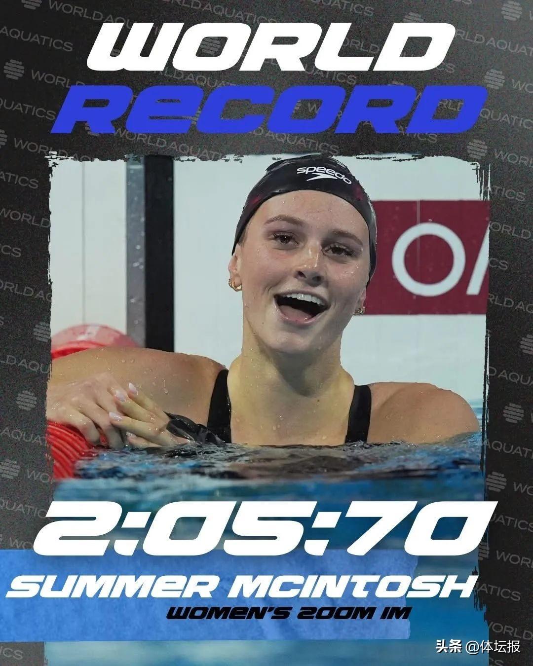 女子200米混合泳原世界紀錄,還是匈牙利鐵娘子霍蘇在2015年世錦賽創造的2分06秒12,是當前保持時間第三長的女子世界紀錄。耐力體能冠絕常人的麥金託什,憑藉最後50米自由泳29秒95的強勁表現,抹去了霍蘇的世界紀錄。