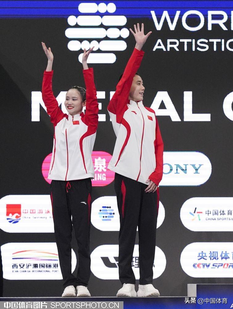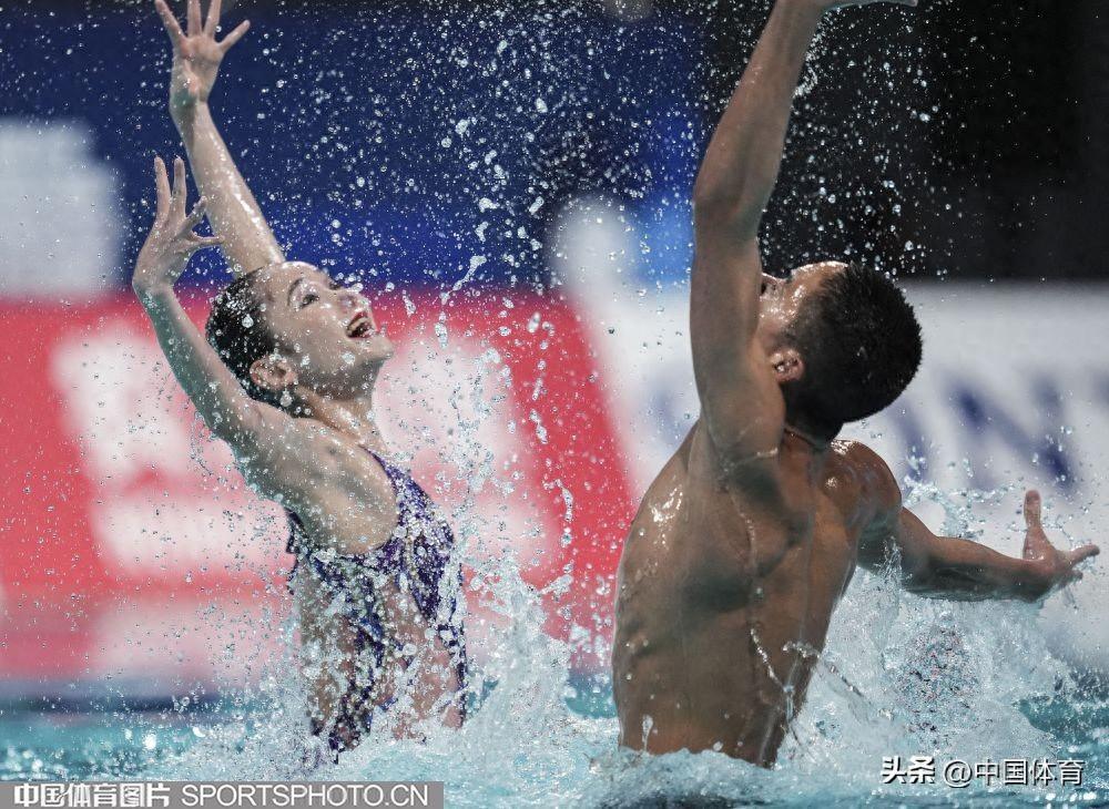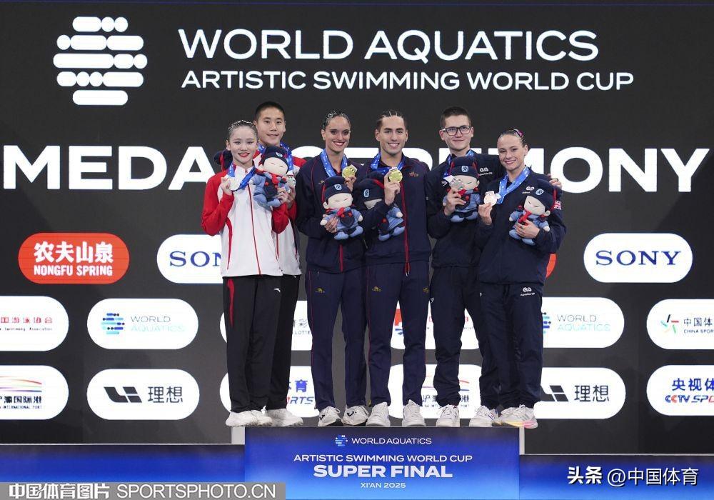 中國體育訊 6月14日,2025年世界泳聯花樣游泳世界盃總決賽在西安奧體中心遊泳跳水館展開第二個比賽日的爭奪。在剛剛結束的混合雙人技術自選決賽中,中國組合郭牧也/郭思彤獲得銀牌。這也是郭牧也繼男單技術自選(銀牌)和男單自由自選(金牌)後,收穫的第三枚獎牌。(中國體育圖片 魏徵 攝)