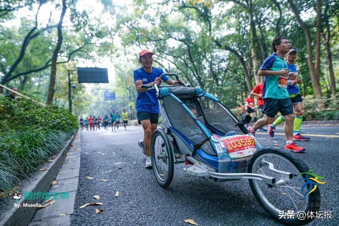推孩子路跑的賽程是辛苦且漫長的,“上臂不能擺動,上坡的時候也會感覺到很累。全馬時間長,有時候需要停下來給小柏換尿不溼。”帶孩子參賽的路程是緊張而坎坷的,“工作不能放,去了就得馬上回。小柏出行只能高鐵或者自駕。”