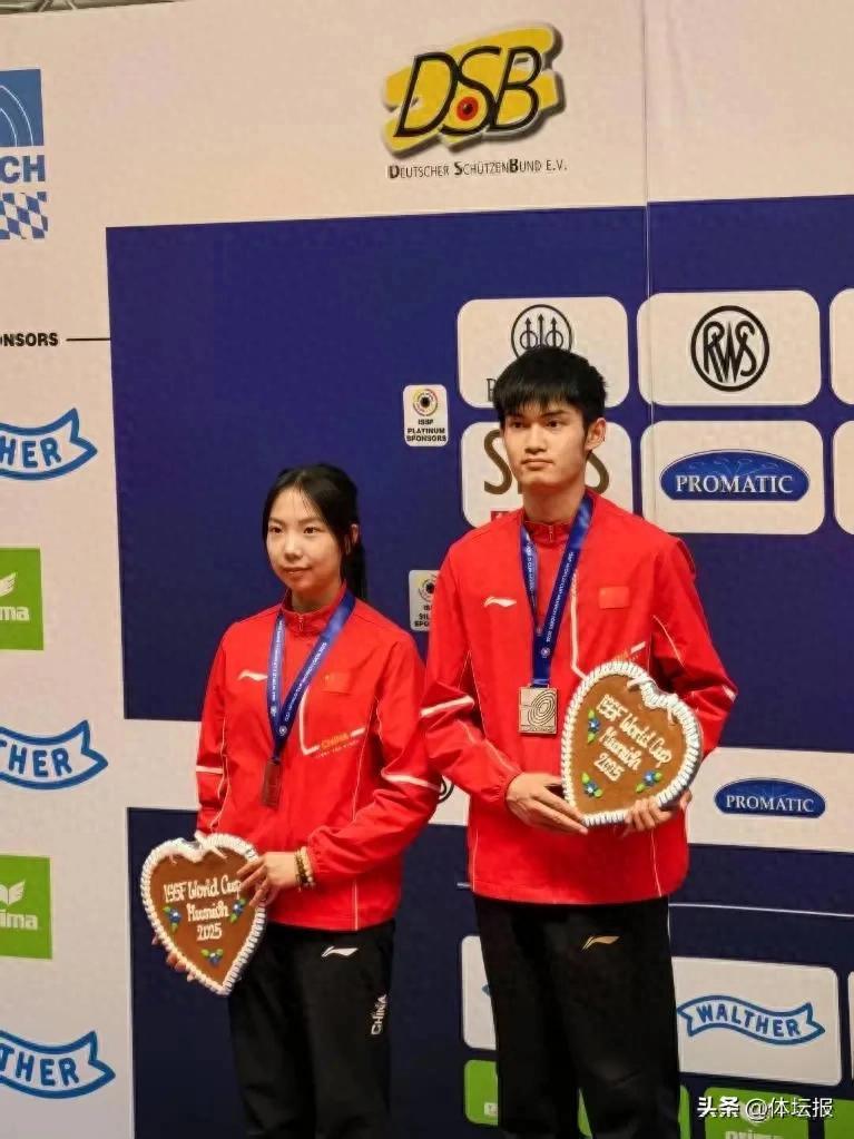 北京時間6月14日,據國際射擊運動聯合會官網消息,在射擊世界盃慕尼黑站(步手槍項目)收官日的兩項混合團體比賽中,中國隊姚千尋和胡凱拿下氣手槍冠軍,王子菲和盛李豪的組合打破氣步槍的資格賽世界紀錄並收穫銀牌。