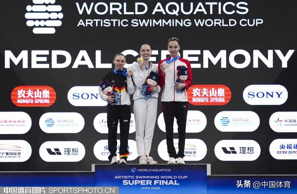 中國體育訊 6月15日,2025年世界泳聯花樣游泳世界盃總決賽在西安奧體中心遊泳跳水館展開收官日的爭奪。在女子單人自由自選決賽中,中國選手徐匯妍以226.5251分獲得銅牌。(中國體育圖片 魏徵 攝)徐匯妍在比賽中徐匯妍在比賽中徐匯妍在比賽中徐匯妍在比賽中徐匯妍在比賽中徐匯妍(右)在頒獎儀式上