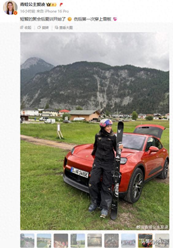 6月17日凌晨,谷愛凌更新社媒動態:短暫的聚會後夏訓開始了 ☀️ 傷後第一次穿上雪板 ❤️