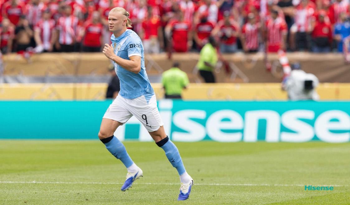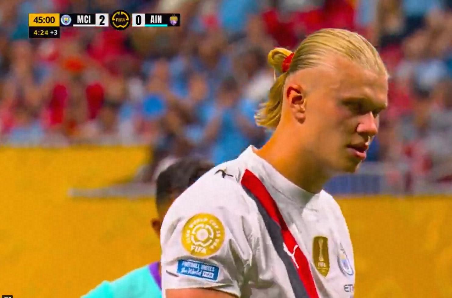 在上半場即將結束的之後,又一個男人站出來了,他就是哈蘭德,隊友阿坎吉造點,主裁判在經過VAR回看之後,果斷判罰了點球,哈蘭德站在12碼前,低射球門右側,艾因隊門將直接判斷錯了,這球有了,挪威鋒霸哈蘭德也收穫了個人世俱杯的首粒進球!事實上除了點球,哈蘭德還有一次單刀破門機會,他在前場搶斷後衛後晃過門將挑射,可惜球滑門而過。