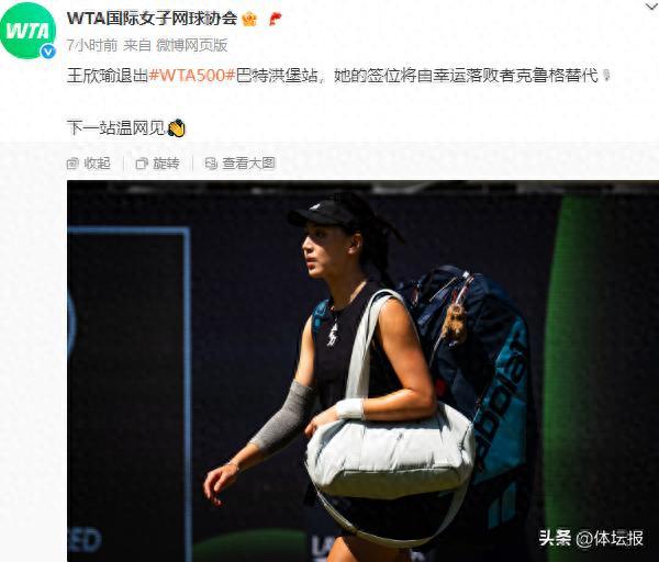 北京時間6月23日,WTA國際女子網球協會發布消息,宣佈王欣瑜退出WTA500巴特洪堡站,她的籤位將由幸運落敗者克魯格替代。