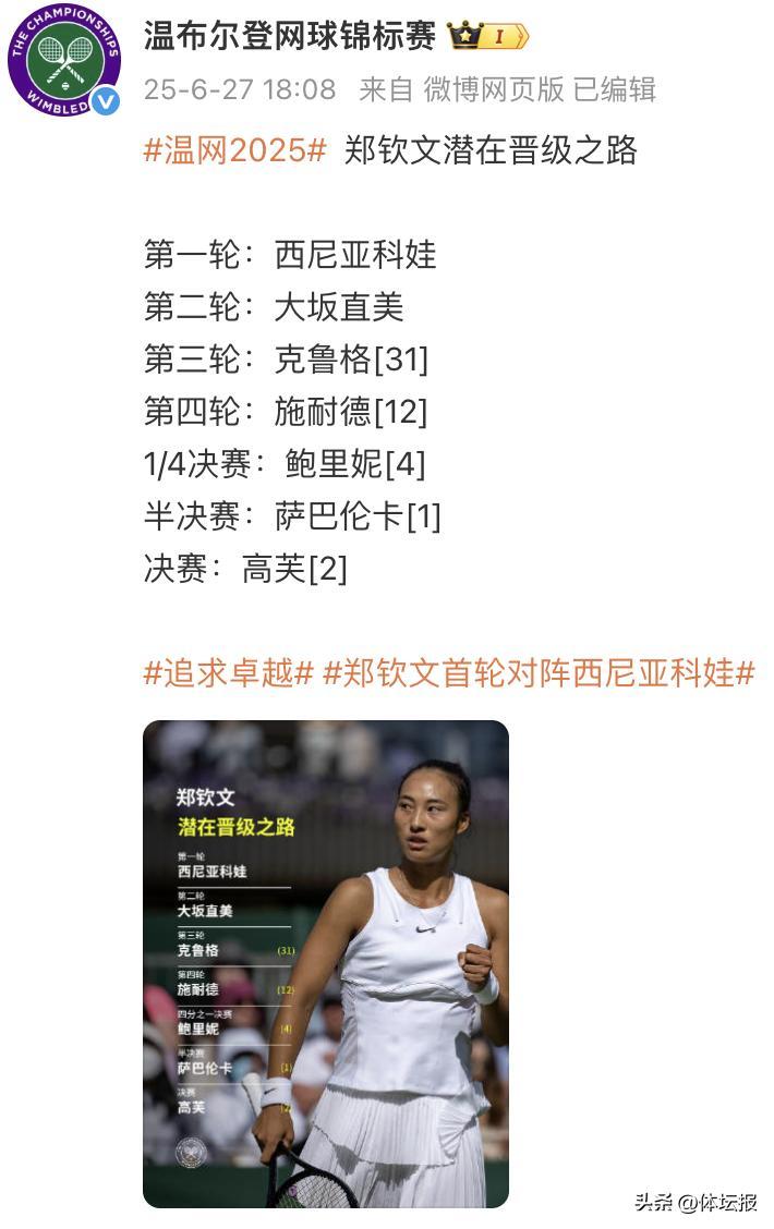 總體來看,鄭欽文本賽季從羅馬站開始的好狀態沒有被從紅土到草地的切換打亂。她的草地賽季以排名新高和技術適應突破爲標誌,儘管半決賽因裝備問題留憾,但已展現頂級競爭力。而在之前退出柏林站專注溫網的決定,也反映她以健康爲前提衝擊溫網的決心:四大滿貫中,溫網是鄭欽文迄今爲止唯一沒有闖進過八強的大滿貫賽事,此前她三次出戰溫網,最好成績爲打進第三輪。
