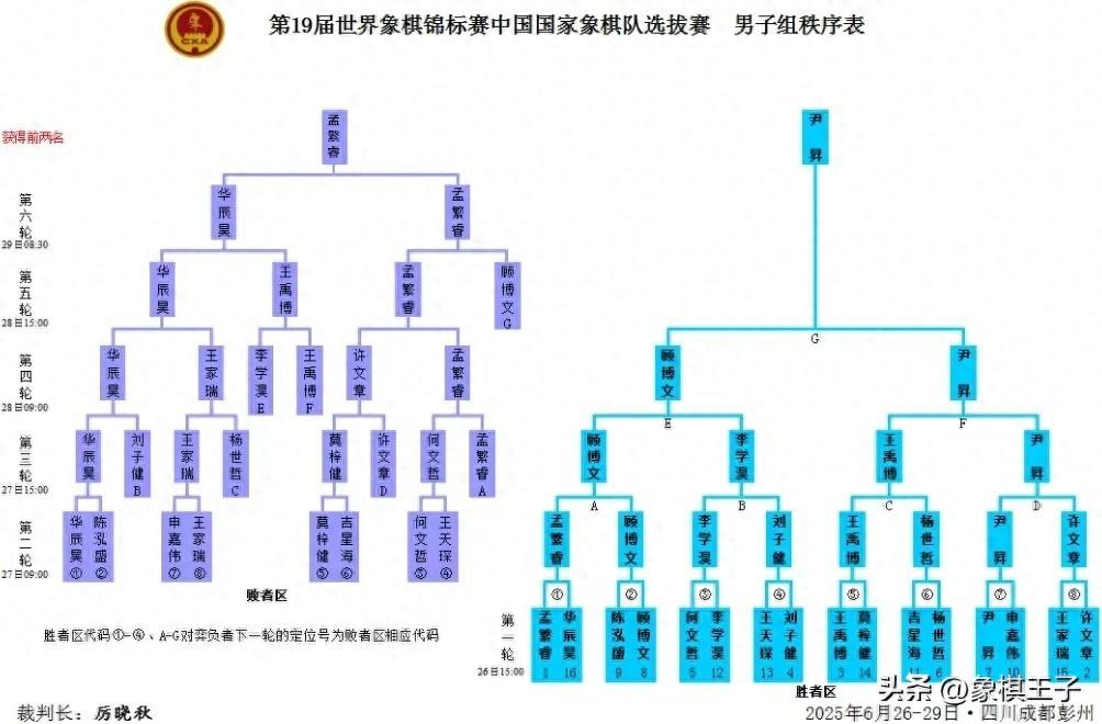 男子組之中,浙江隊05年的尹昇發揮出色,在一路上擊敗了包括申嘉偉、許文章、王禹博、顧博文在內的四位強將,以勝者組第一入圍。