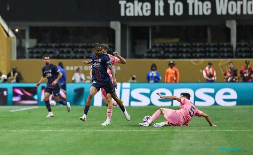 此役上半場,若奧-內維斯完成了梅開二度的好戲,第6分鐘大巴黎就取得了夢幻開局,半場尾聲階段,布斯克茨失誤被斷,杜埃造阿維萊斯烏龍,比分差距擴大到3球,而在半場補時最後一刻,阿什拉夫破門,邁阿密國際又又又丟球了,徹底失去了比賽懸念;