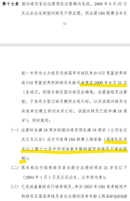 這其中,令不少球迷欣喜的,當屬官方放開了球員可註冊的最低年齡限制,按照最新規定,球員未滿18週歲,但代表國青男籃征戰過U17等級別的世界盃比賽的球員,可以在新賽季註冊,最小可以放寬至16歲。