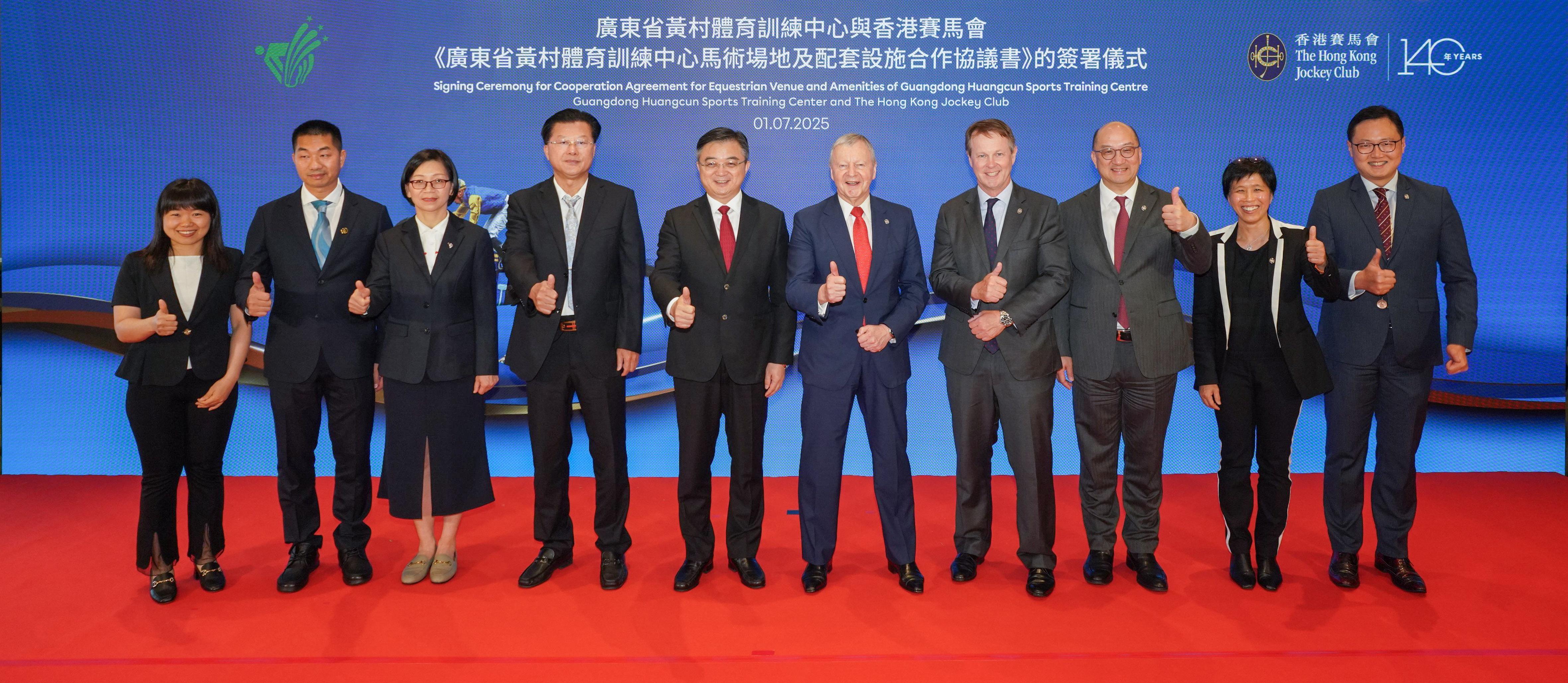 同日,馬會與廣東省黃村體育訓練中心(黃村訓練中心)簽署合作協議。馬會將投入資金、技術和管理經驗,與黃村訓練中心共同使用馬術場地設施和設備。廣東省體育局局長崔劍表示,透過共用馬術場地和共同培育人才,有助推動提升粵港馬術競技水準,爲大灣區培育更多征戰國際賽場的頂尖騎手,爲體育高質量發展注入可持續的新動能。