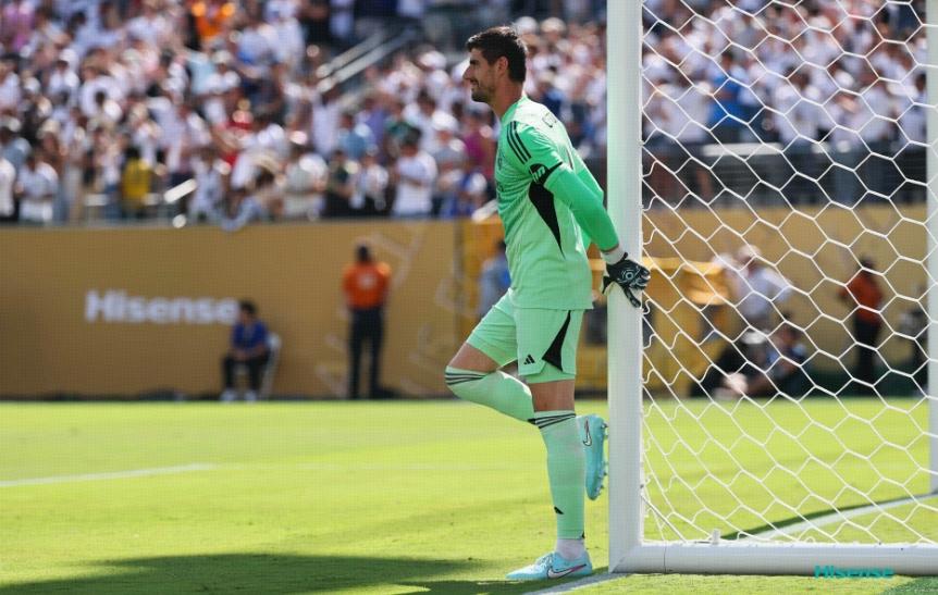 讀秒階段,門神庫爾圖瓦演繹神撲,化解薩比策的絕平打門,這樣一來,皇馬把3-2的比分保持到最後,有驚無險闖入4強!