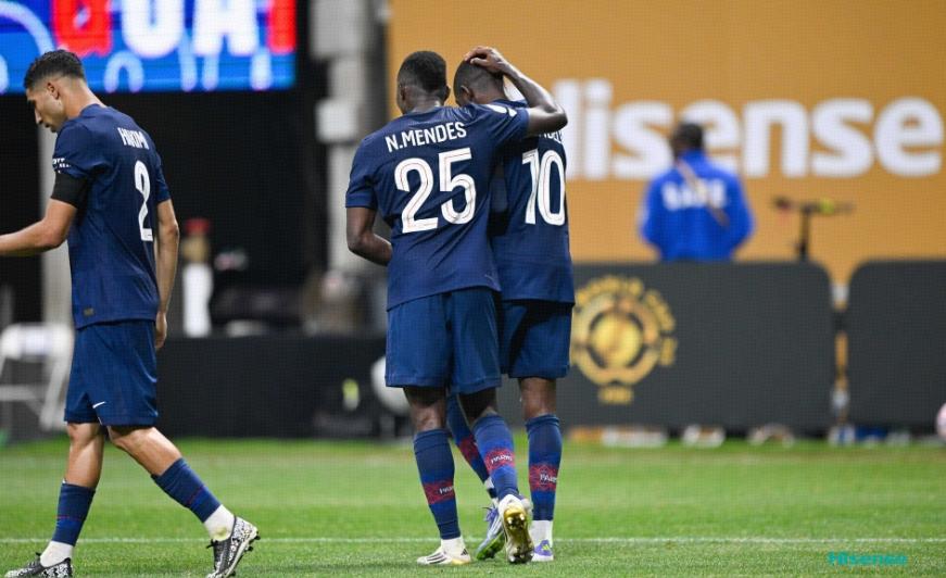 比賽進入最後的傷停補時階段,盧卡斯肘擊格雷羅面部,安東尼-泰勒再次直接出示紅牌,巴黎9人應戰,最後幾分鐘如果再丟球的話,加時賽就不好踢了,但誰曾想,第96分鐘阿什拉夫右路面對3人防守擺脫後回敲,登貝萊順勢推射破門,巴黎2-0拜仁,徹底終結比賽了!