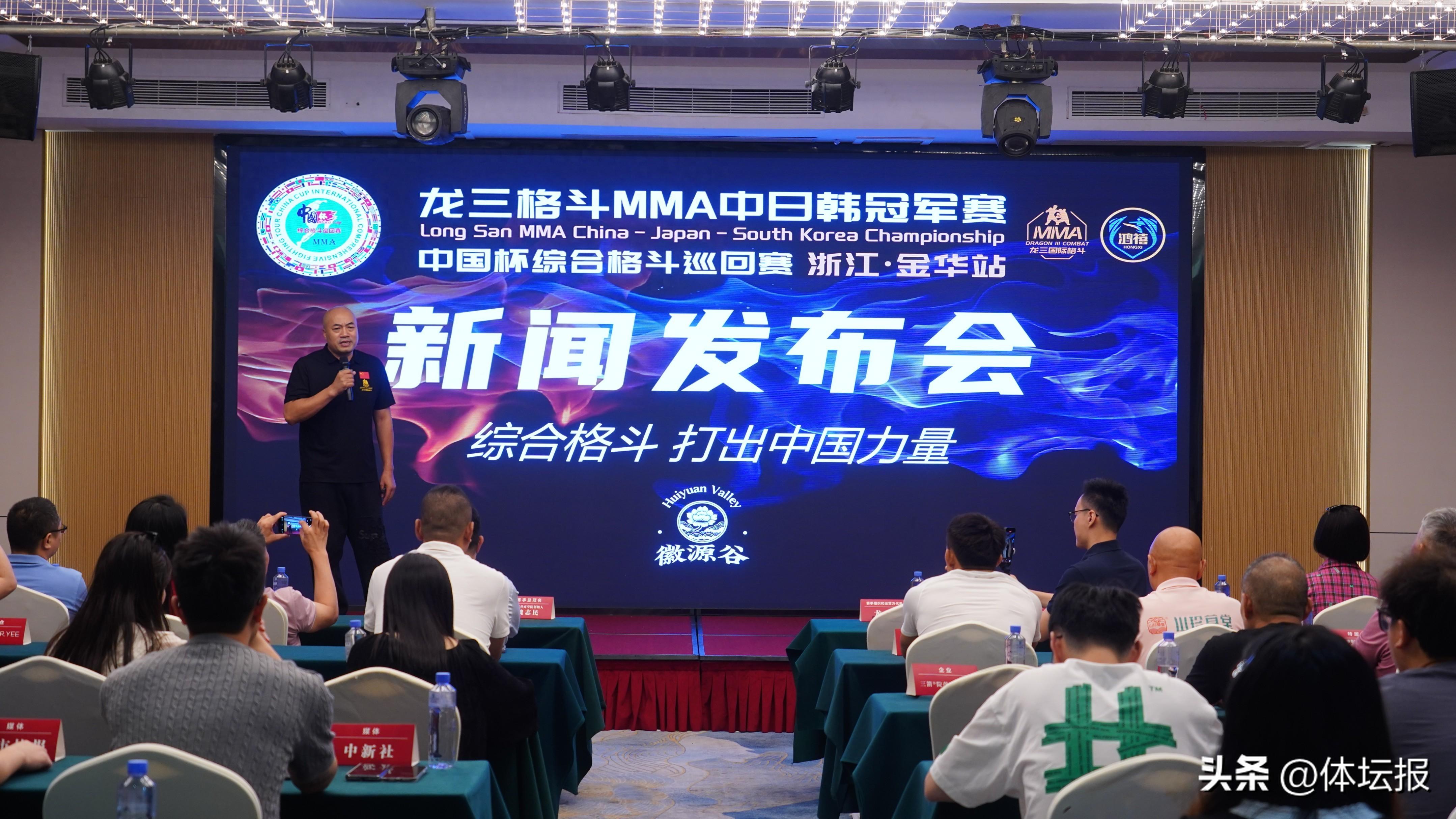 7月6日,龍三格鬥MMA中日韓冠軍賽暨中國杯綜合格鬥巡迴賽·金華站賽事新聞發佈會順利召開。發佈會上詳細介紹了本次賽事的基本情況、特色亮點以及賽事安排,吸引了衆多媒體和格鬥愛好者的關注。該賽事爲巡迴賽的第二站,首站於去年在廣州舉行。