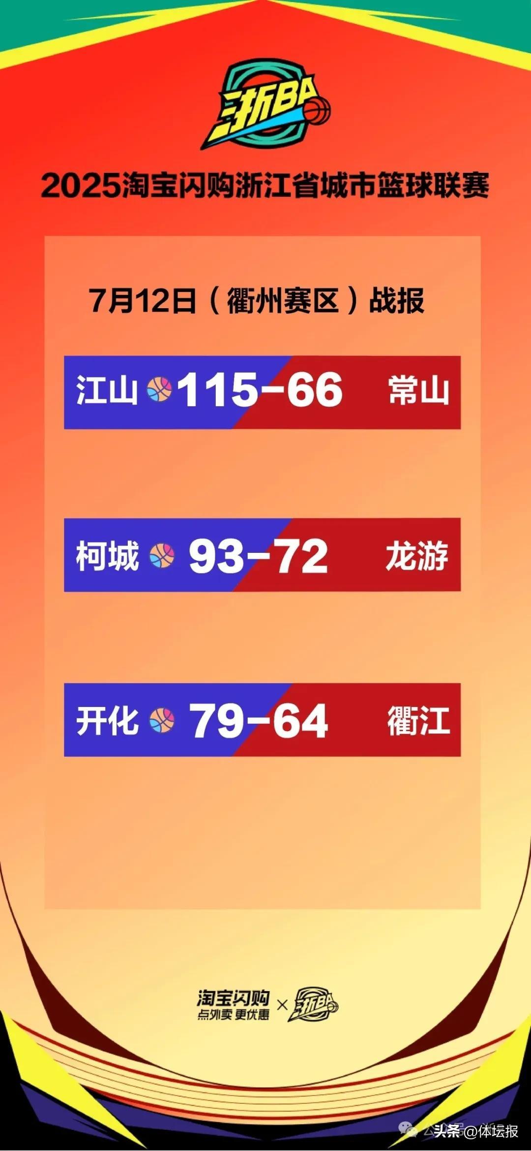 7月12日浙BA迎來揭幕後的第一個高密度比賽日杭州、溫州、紹興、嘉興、衢州、舟山等6個地市共上演16場“散裝大賽”最大比分差出現在衢州,江山隊氣勢如虹,以115:66大勝常山隊。而最遺憾的莫過於紹興賽區的越城隊,64:65一分之差惜敗柯橋隊。所有場次比分如下:今天(7月13日)的比賽場次更多共有22場!湖州、麗水、金華賽區都將揭開戰幕具體比賽時間和對陣情況如下:(具體比賽時間以當地實際舉辦爲準)來源:浙BA